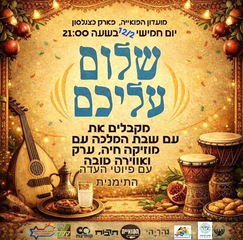 שלום עליכם אנשים יקרים 🕊 קבלת השבת הקהילתית שלנו חוזרת! והפעם- היישר מכרם התימנים אלינו לשכונה עם פיוטים של העדה התימנית לכבוד שבת 🍇 אור סיני סינוואני הזמר המוכשר בליווי מוזיקלי של עדי שורני ושמעון פרץ 🎶 וכמו תמיד נפתח שולחן קהילתי אליו תוכלו להביא מטעמים משולחן השבת שלכם 🥖🍷 פינוקים וערק לימונים בשפע יוגשו […]