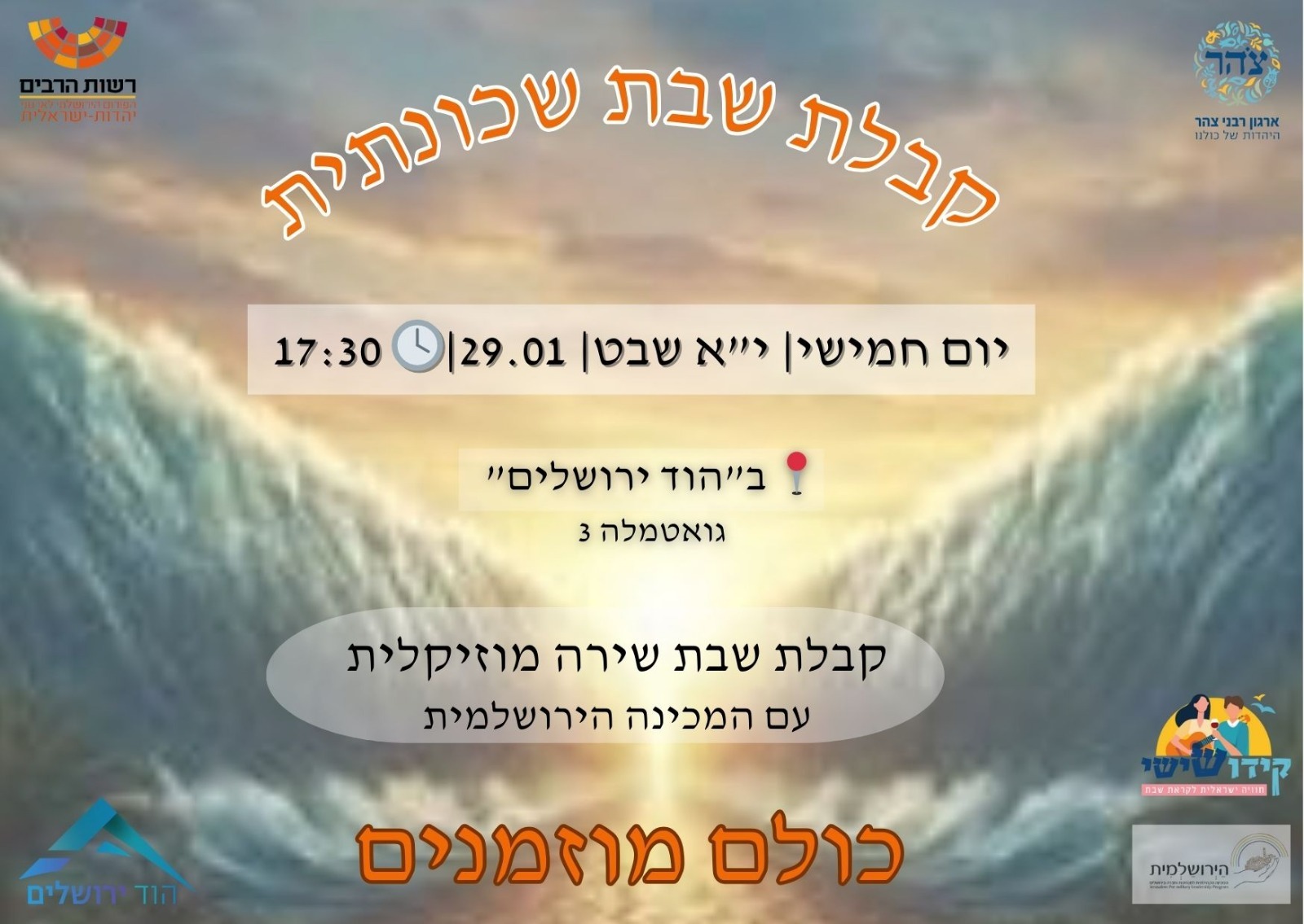 אנו מתכננים לקיים קבלות שבת ב"גינת וולטה" או בבית הקהילות, המקלט שבחלק מהגינה, לפי מזג האוויר.